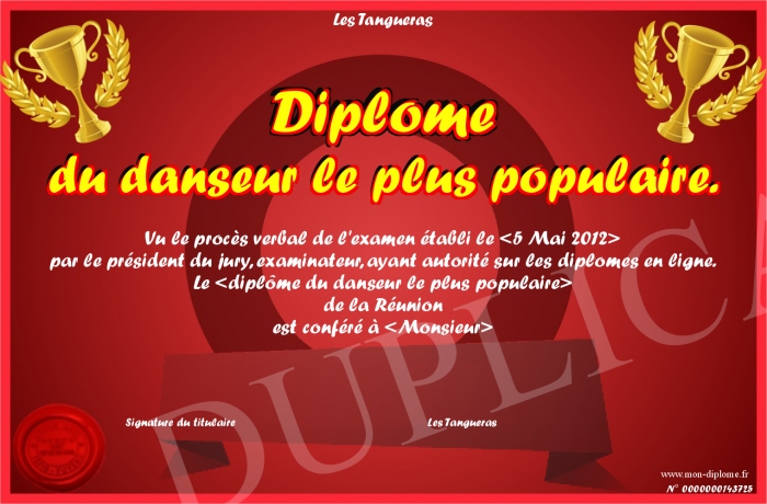 Envoyez par email votre Diplome du danseur le plus populaire. personalisé