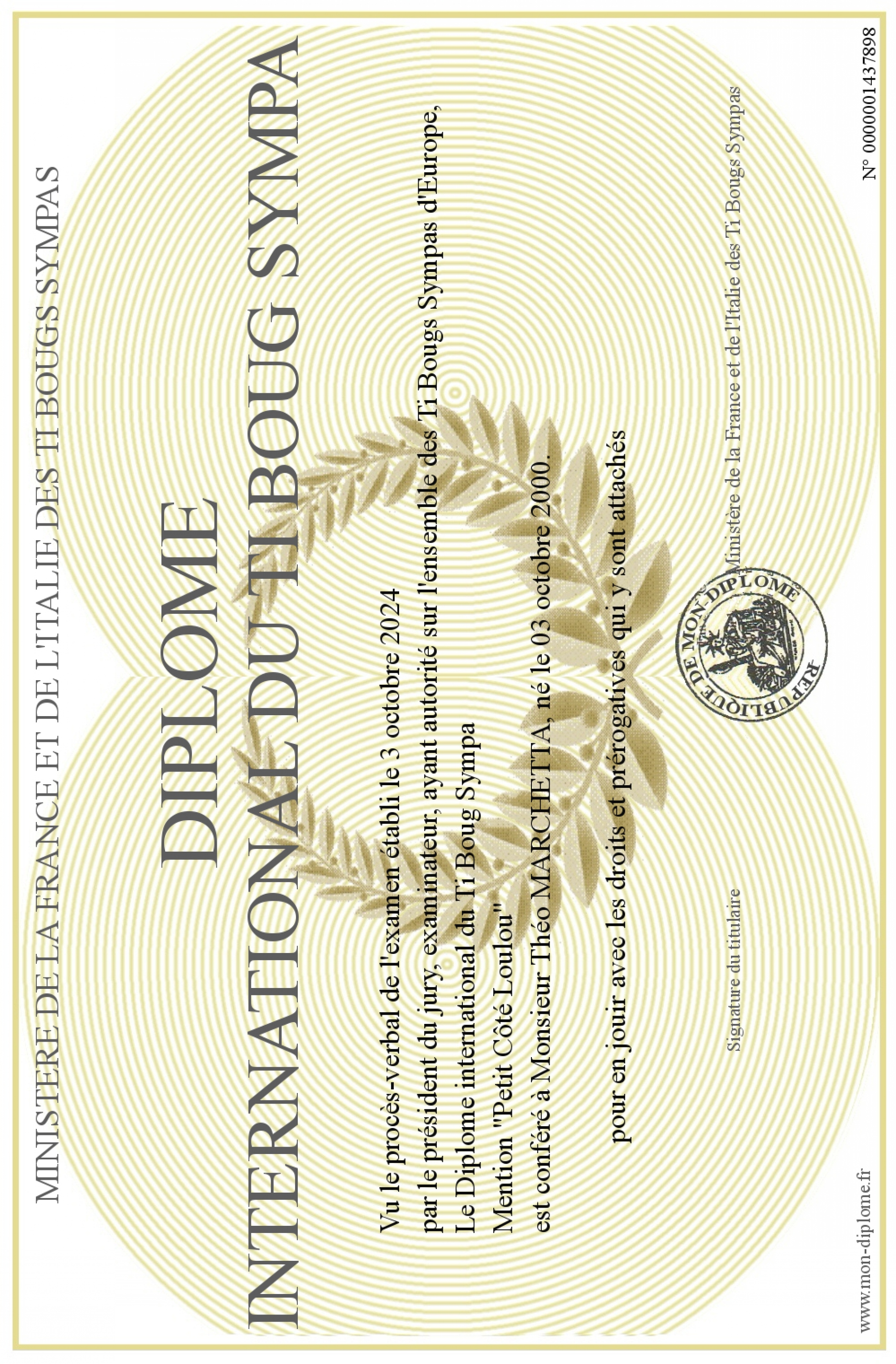 Envoyez par email votre Diplôme international du Ti Boug Sympa personalisé