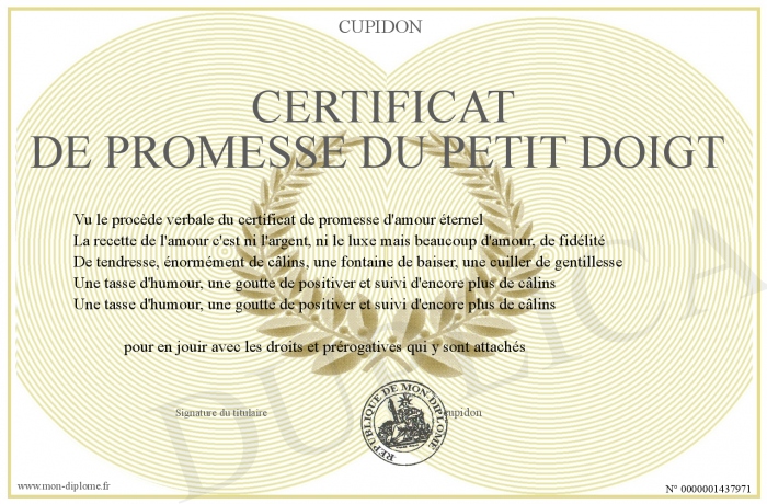 Envoyez par email votre Certificat de promesse du petit doigt personalisé