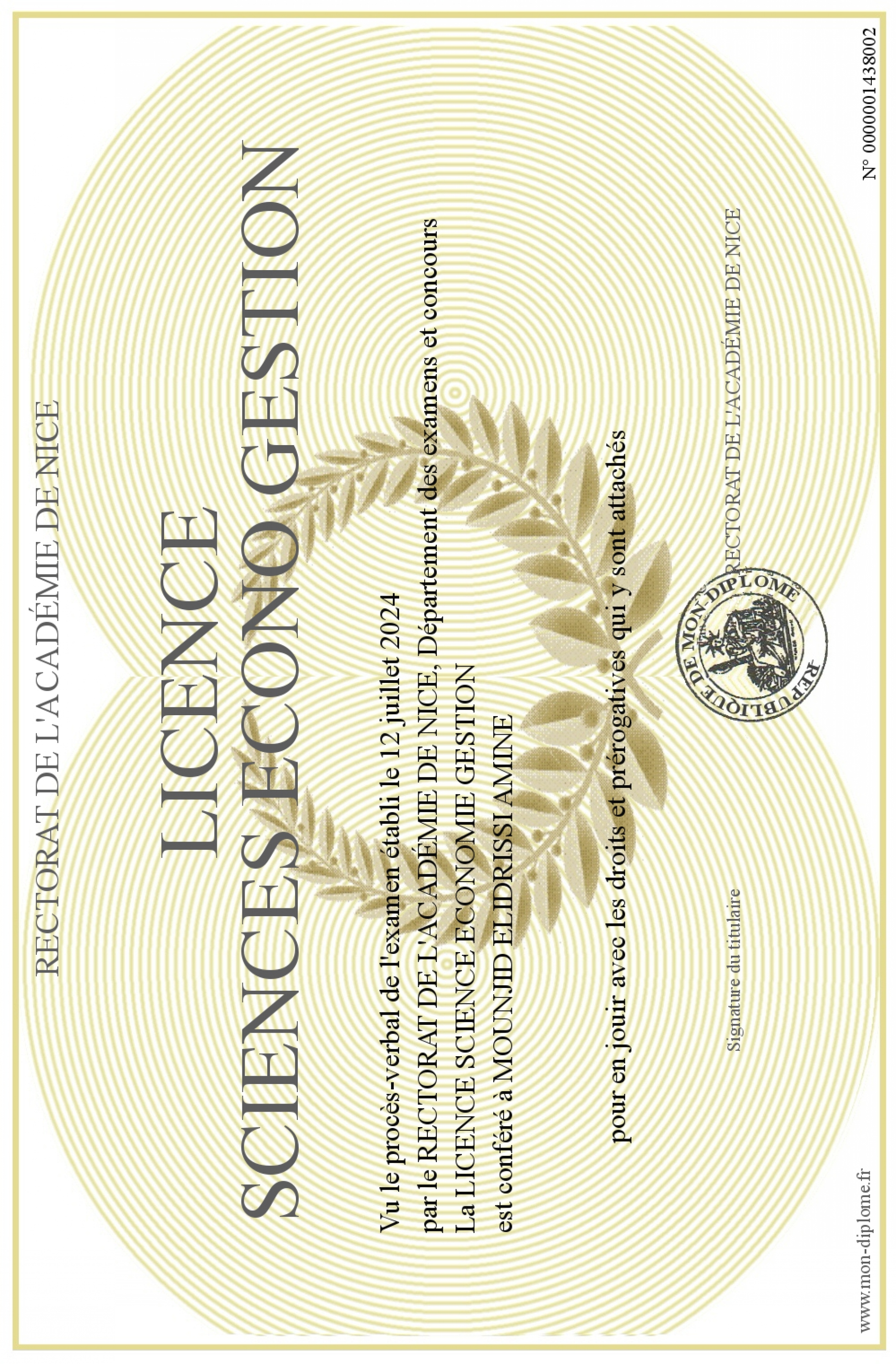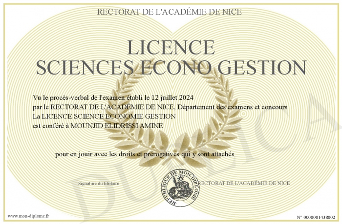 Envoyez par email votre LICENCE SCIENCES ECONo GESTION personalisé