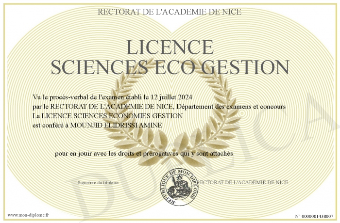 Envoyez par email votre LICENCE SCIENCES ECO GESTION personalisé