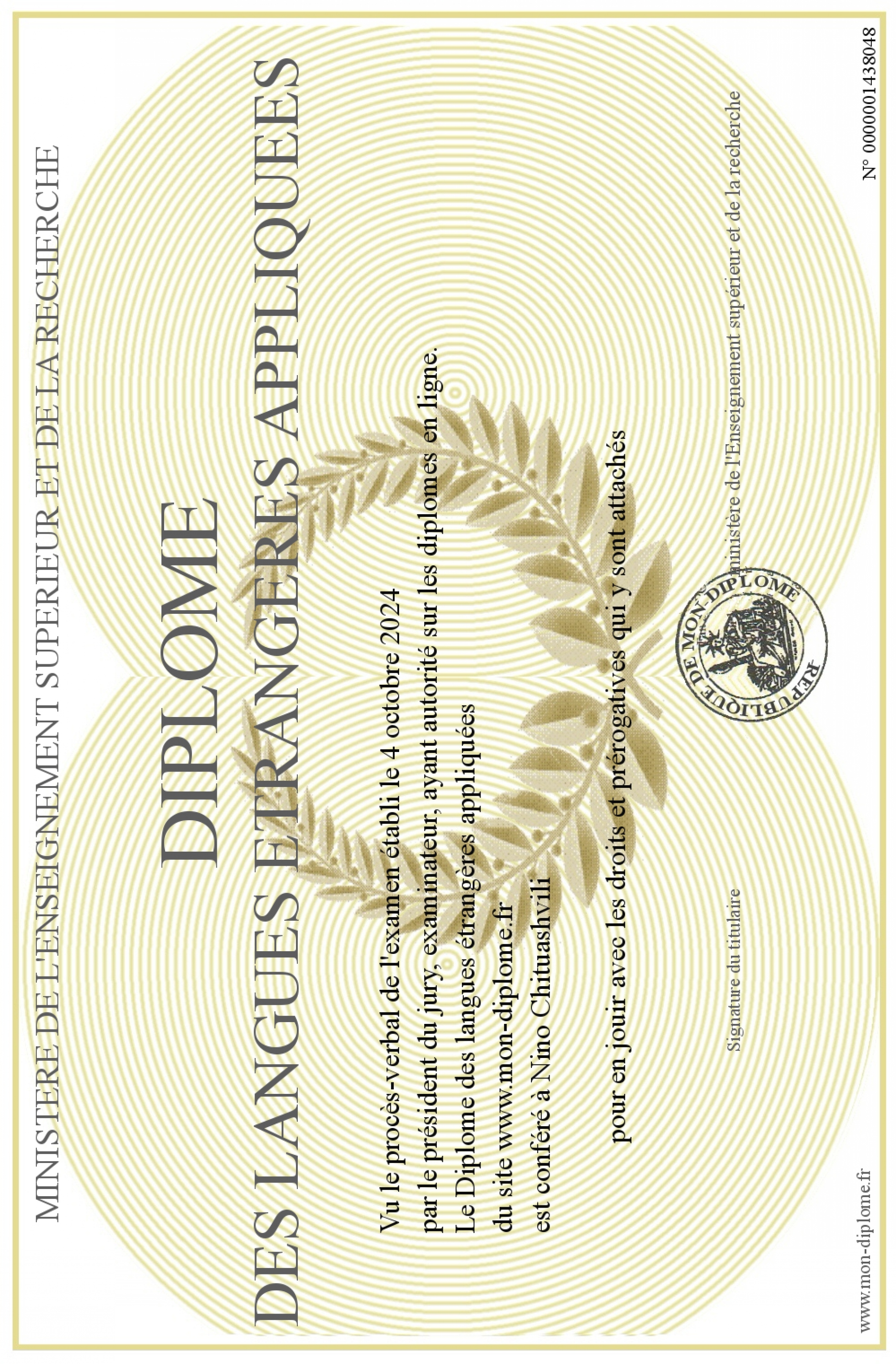 Envoyez par email votre Diplôme des langues étrangères appliquées personalisé