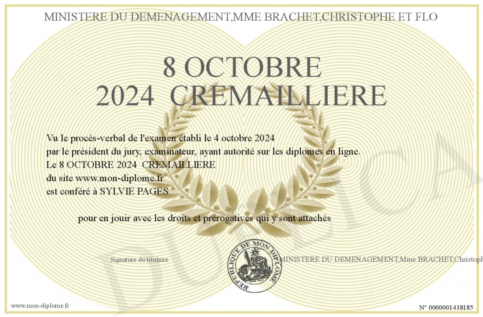 Envoyez par email votre 8 OCTOBRE 2024 CREMAILLIERE personalisé