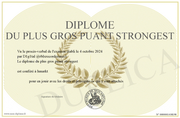 Envoyez par email votre diplome du plus gros puant strongest personalisé