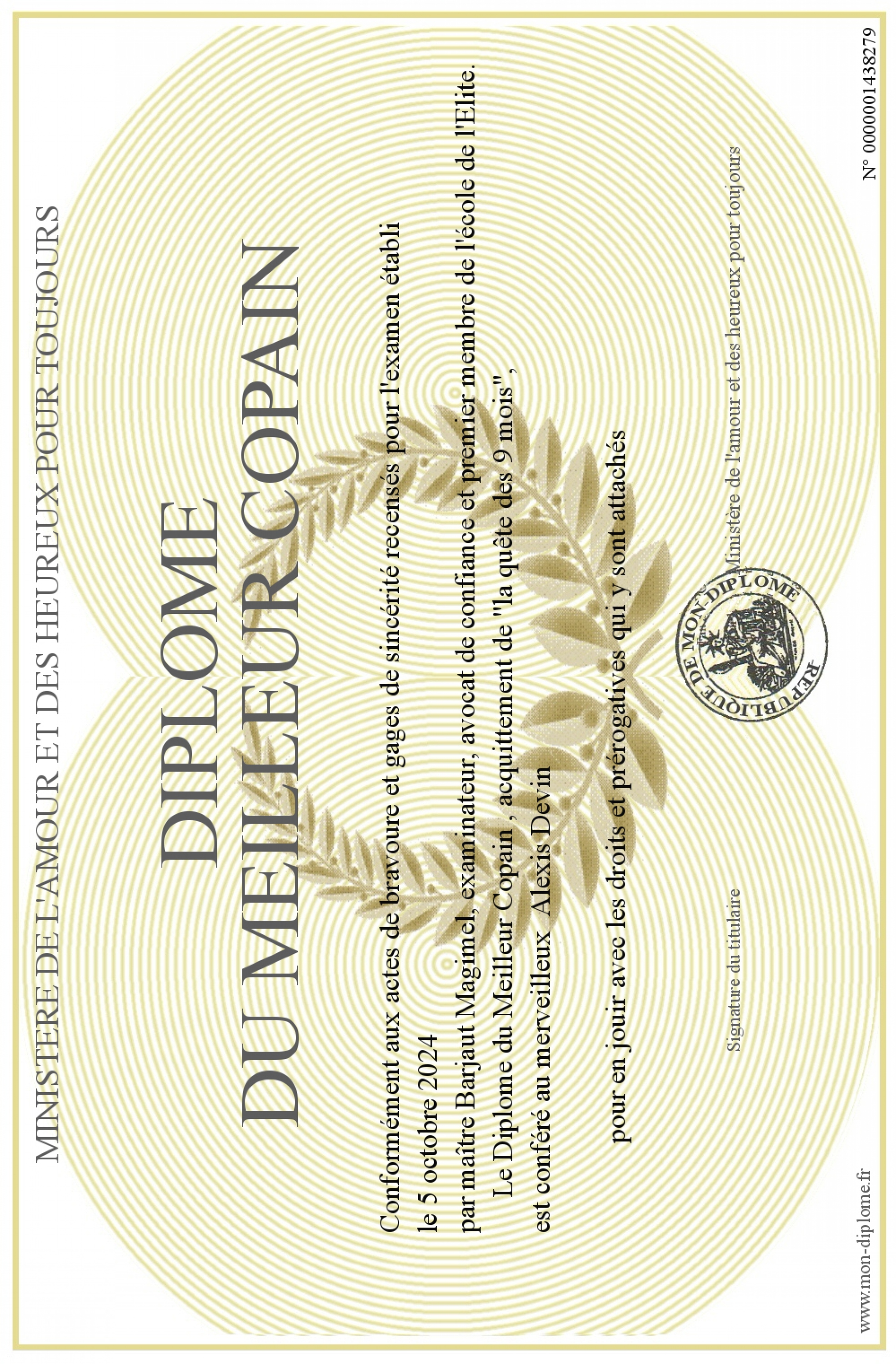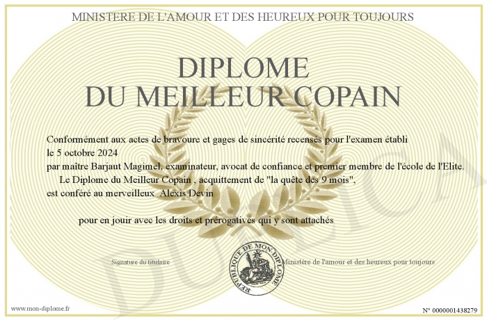 Envoyez par email votre Diplôme du Meilleur Copain personalisé