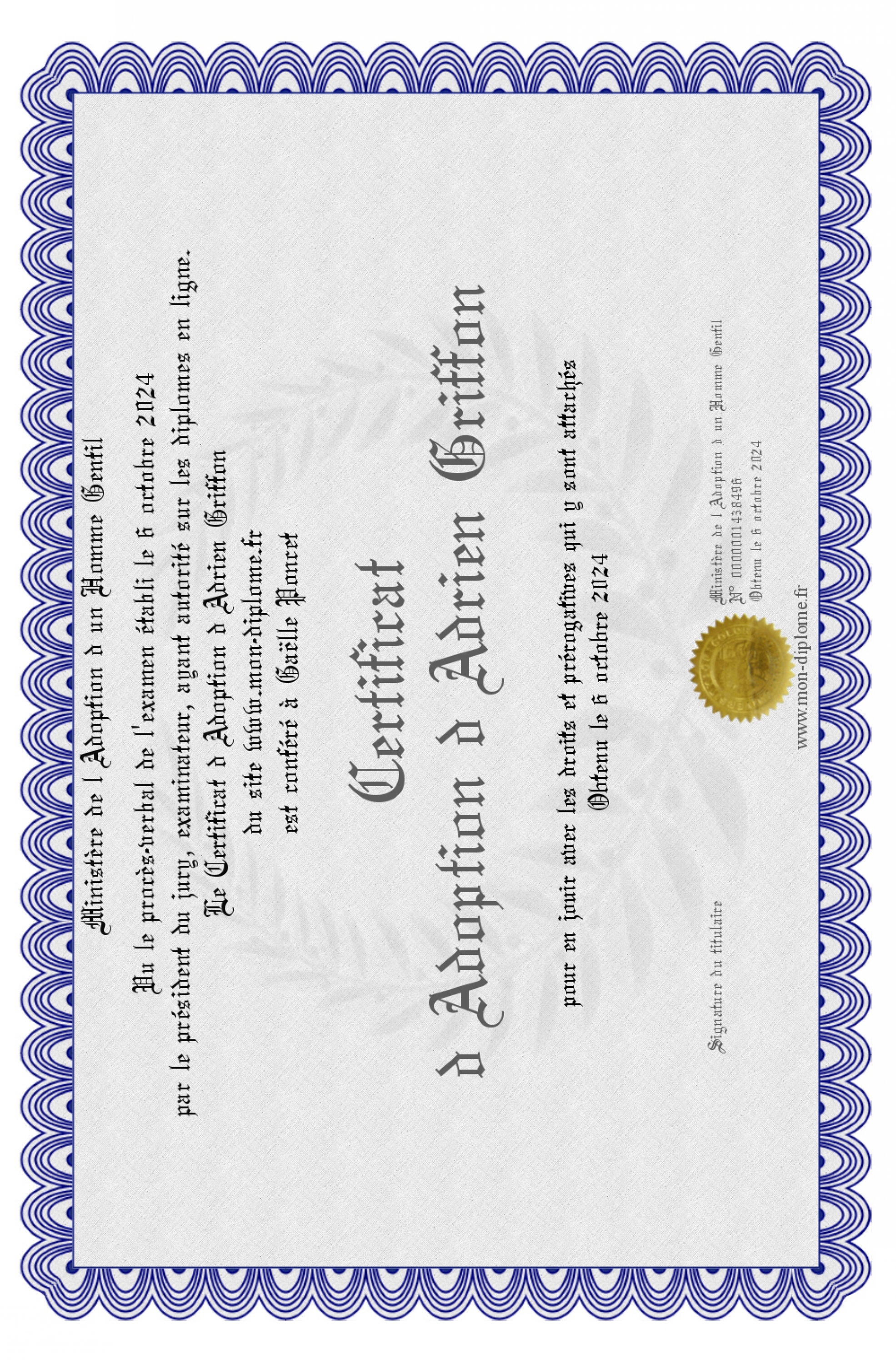 Envoyez par email votre Certificat d Adoption d Adrien Griffon personalisé