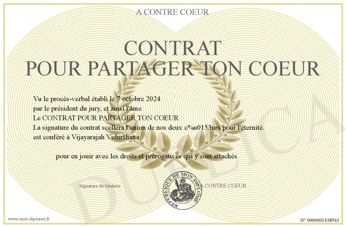 Envoyez par email votre CONTRAT POUR PARTAGER TON COEUR personalisé