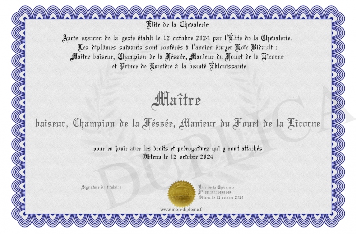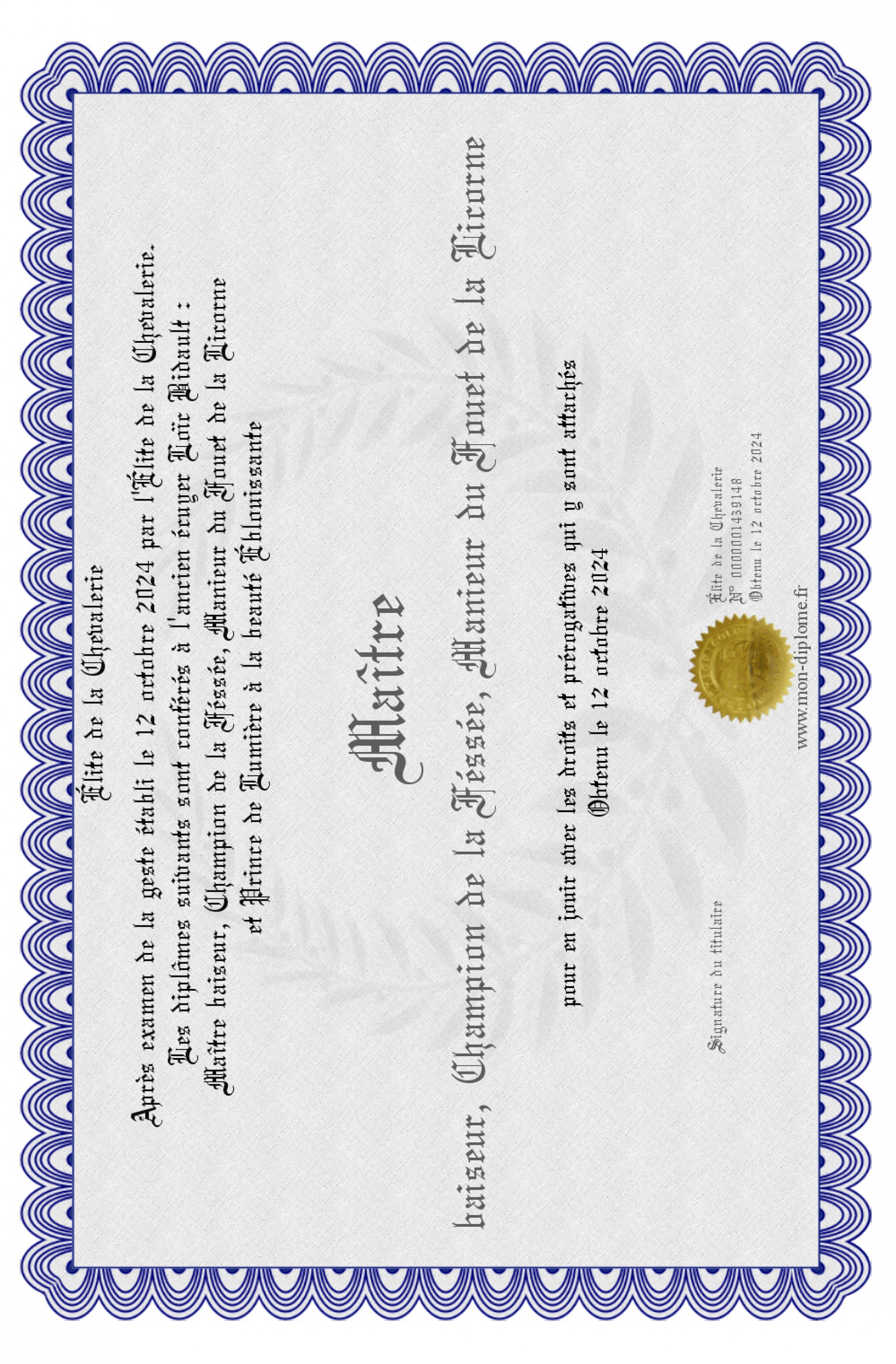 Envoyez par email votre Maître baiseur, Champion de la Féssée, Manieur du Fouet de la Licorne personalisé