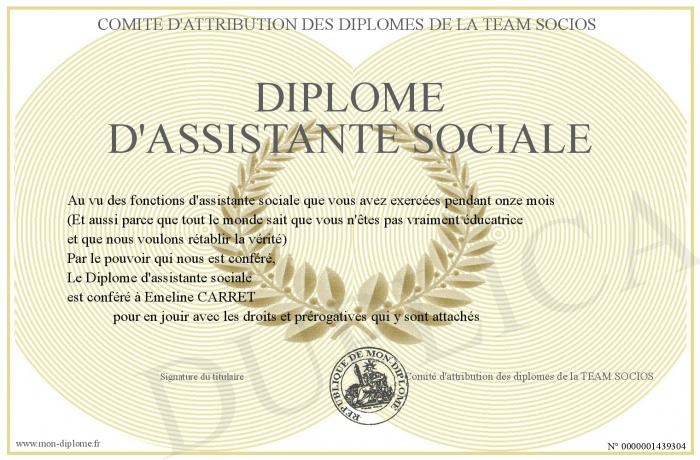 Envoyez par email votre Diplôme d'assistante sociale personalisé