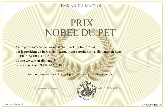 Envoyez par email votre PRIX NOBEL DU PET personalisé
