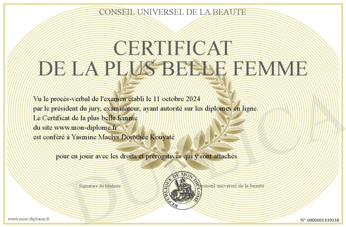 Envoyez par email votre Certificat de la plus belle femme personalisé