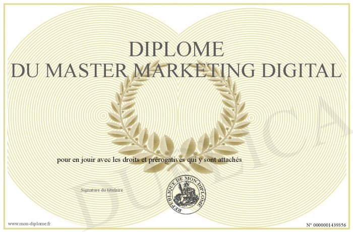 Envoyez par email votre Diplôme du master marketing digital personalisé