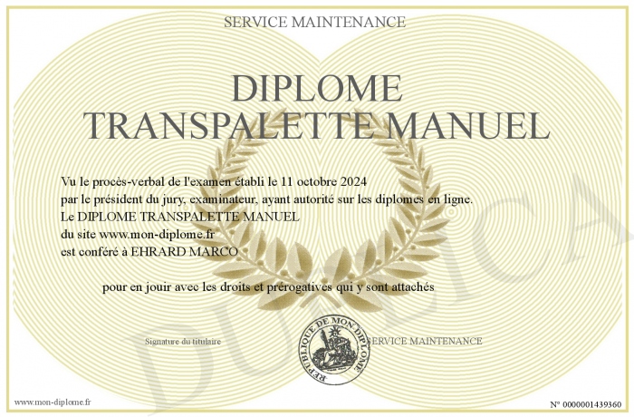 Envoyez par email votre DIPLOME TRANSPALETTE MANUEL personalisé