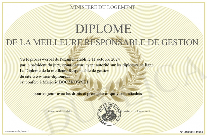 Envoyez par email votre Diplôme de la meilleure Responsable de gestion personalisé