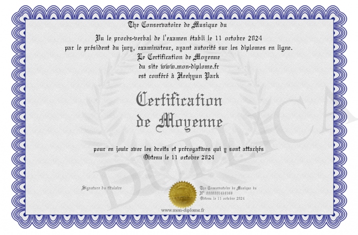 Envoyez par email votre Certification de Moyenne personalisé