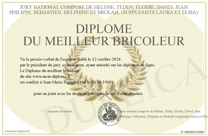 Envoyez par email votre Diplôme du meilleur bricoleur personalisé