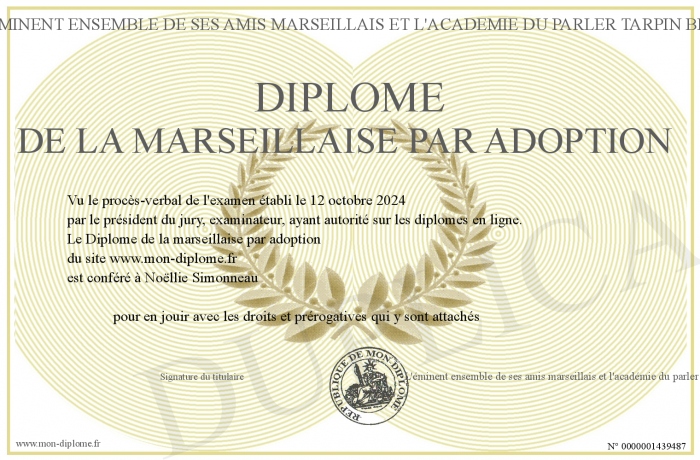 Envoyez par email votre Diplôme de la marseillaise par adoption personalisé
