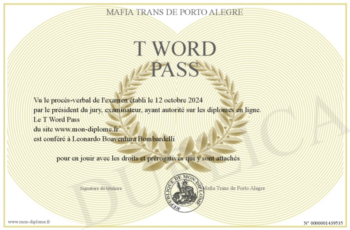 Envoyez par email votre T Word Pass personalisé