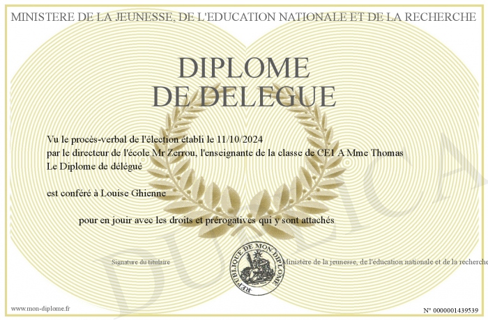Envoyez par email votre Diplôme de délégué personalisé