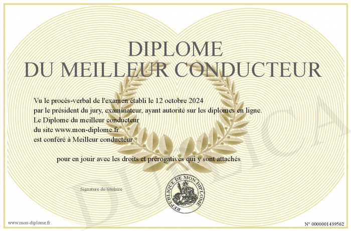 Envoyez par email votre Diplôme du meilleur conducteur personalisé