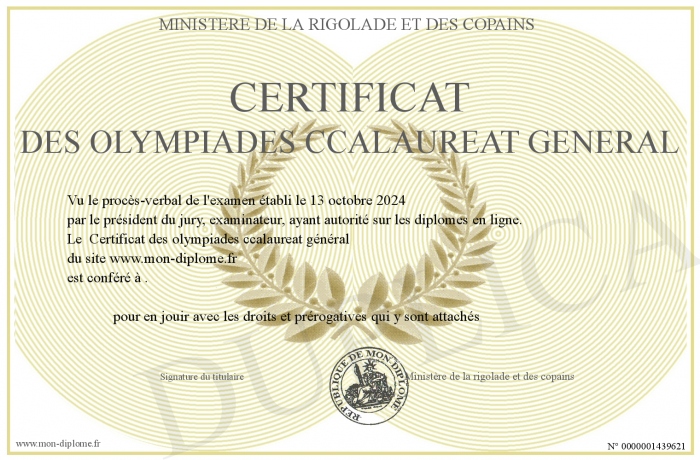 Envoyez par email votre Certificat des olympiades ccalaureat général personalisé