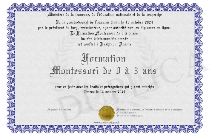 Envoyez par email votre Formation Montessori de 0 à 3 ans personalisé