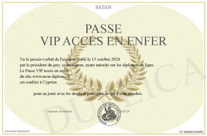 Envoyez par email votre Passe VIP accès en enfer personalisé
