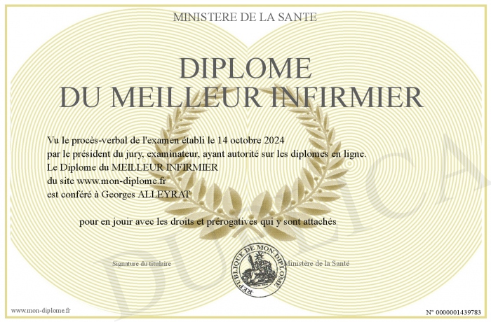 Envoyez par email votre Diplôme du MEILLEUR INFIRMIER personalisé