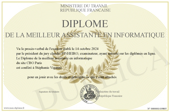 Envoyez par email votre Diplôme de la meilleur assistante en informatique personalisé
