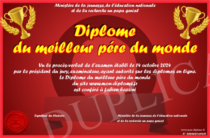 Envoyez par email votre Diplôme du meilleur pére du monde personalisé
