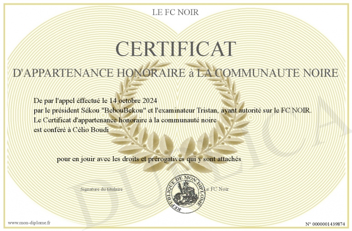 Envoyez par email votre Certificat d'appartenance honoraire à la communauté noire personalisé