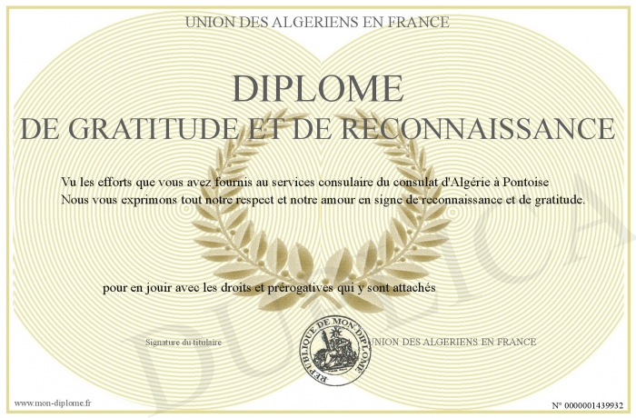 Envoyez par email votre Diplôme de Gratitude et de Reconnaissance personalisé