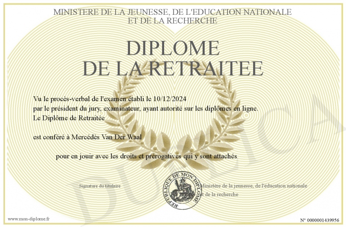 Envoyez par email votre Diplôme de la Retraitée personalisé
