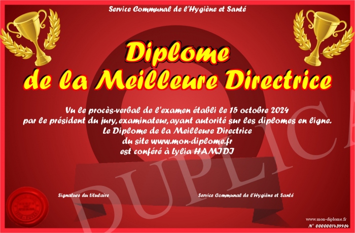 Envoyez par email votre Diplôme de la Meilleure Directrice personalisé