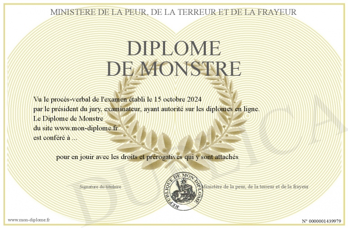 Envoyez par email votre Diplôme de Monstre personalisé