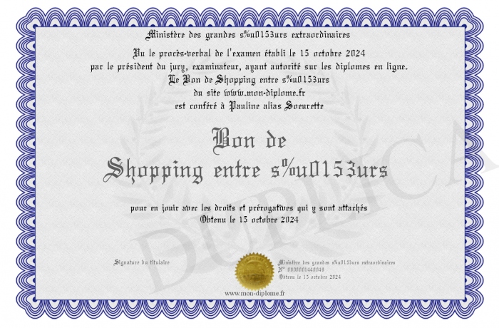 Envoyez par email votre Bon de Shopping entre soeurs personalisé