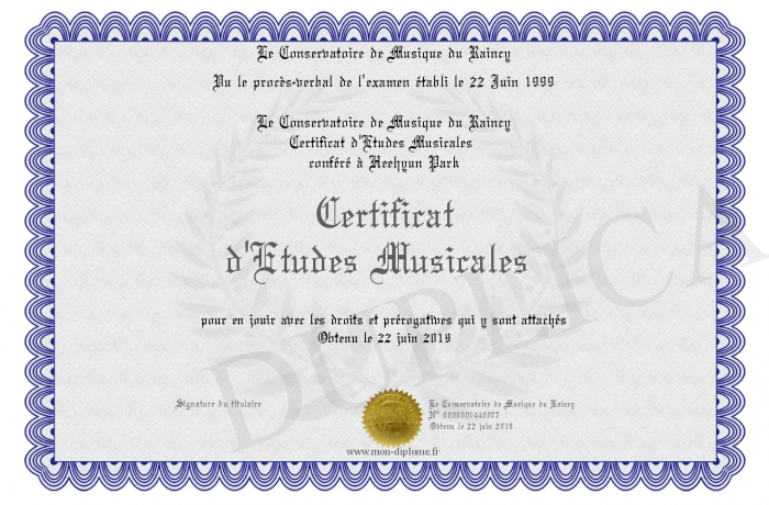 Envoyez par email votre Certificat d'Etudes Musicales personalisé