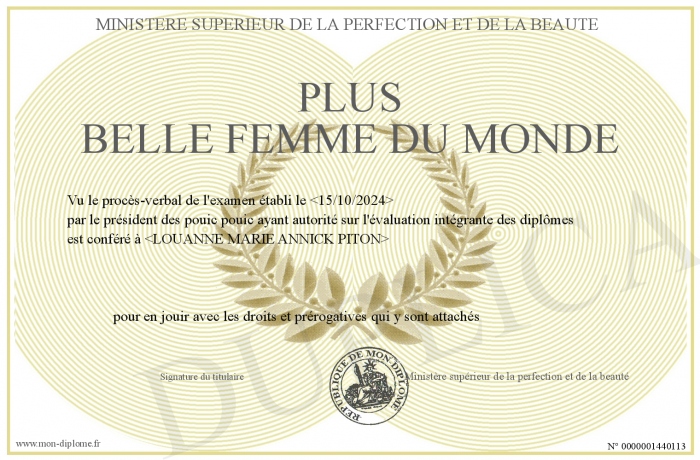 Envoyez par email votre PLUS BELLE FEMME DU MONDE personalisé