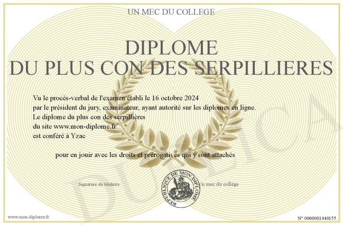 Envoyez par email votre diplôme du plus con des serpillières personalisé