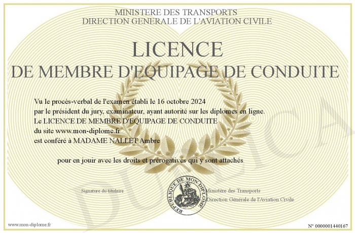 Envoyez par email votre LICENCE DE MEMBRE D'EQUIPAGE DE CONDUITE personalisé