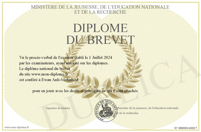 Pour demander la suppression du diplome affiché ci-haut, cliquez ici.