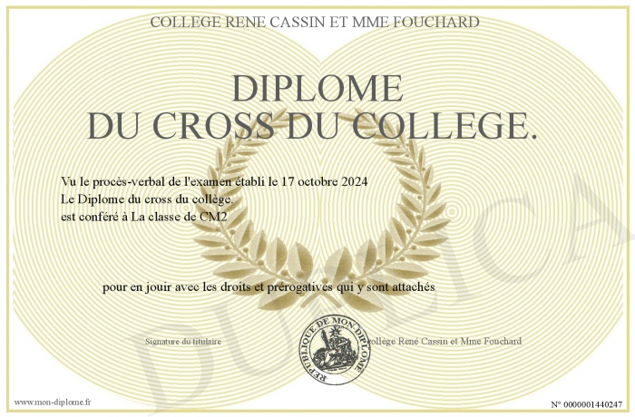 Envoyez par email votre Diplôme du cross du collège. personalisé