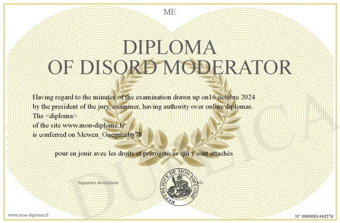 Envoyez par email votre Diploma Of Disord Moderator personalisé