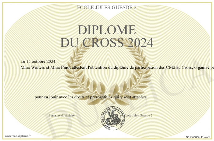 Envoyez par email votre Diplôme du Cross 2024 personalisé