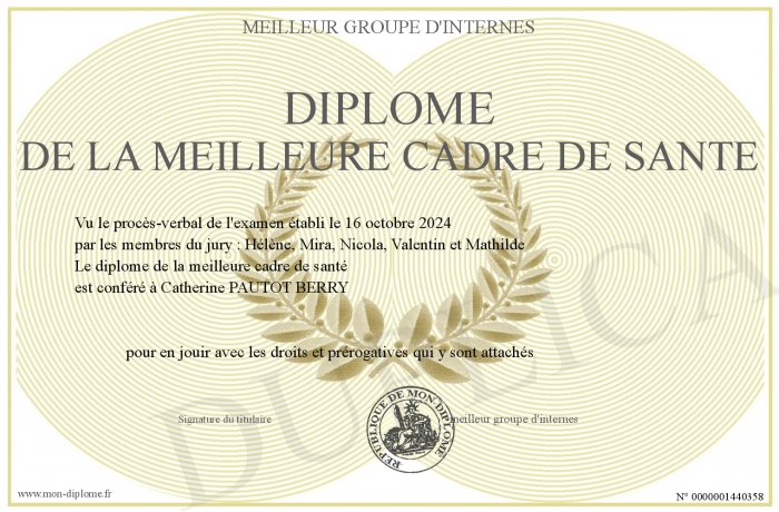 Envoyez par email votre Diplôme de la meilleure cadre de santé personalisé