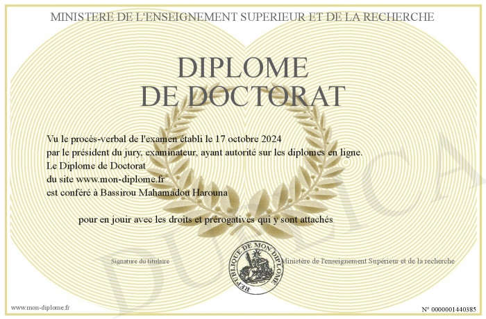 Envoyez par email votre Diplôme de Doctorat personalisé