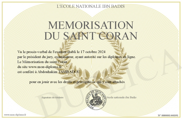 Envoyez par email votre Mémorisation du saint Coran personalisé