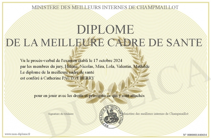 Envoyez par email votre Diplôme de la meilleure cadre de santé personalisé