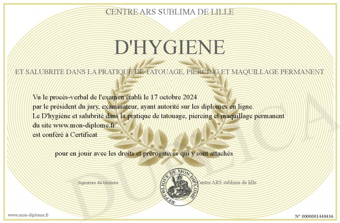 Envoyez par email votre D'hygiène et salubrité dans la pratique de tatouage, piercing et maquillage permanent personalisé