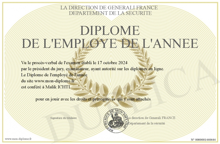 Envoyez par email votre Diplôme de l'employé de l'année personalisé
